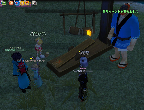 『マビノギ』モリアンサーバー、ユリディノト(人間♀)、ランジエ(エルフ♂)、鯰守(人間♂)