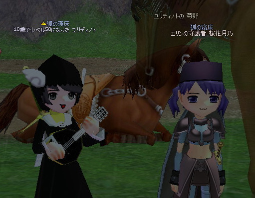 『マビノギ』モリアンサーバー、ユリディノト(人間♀)、ランジエ(エルフ♂)、鯰守(人間♂)